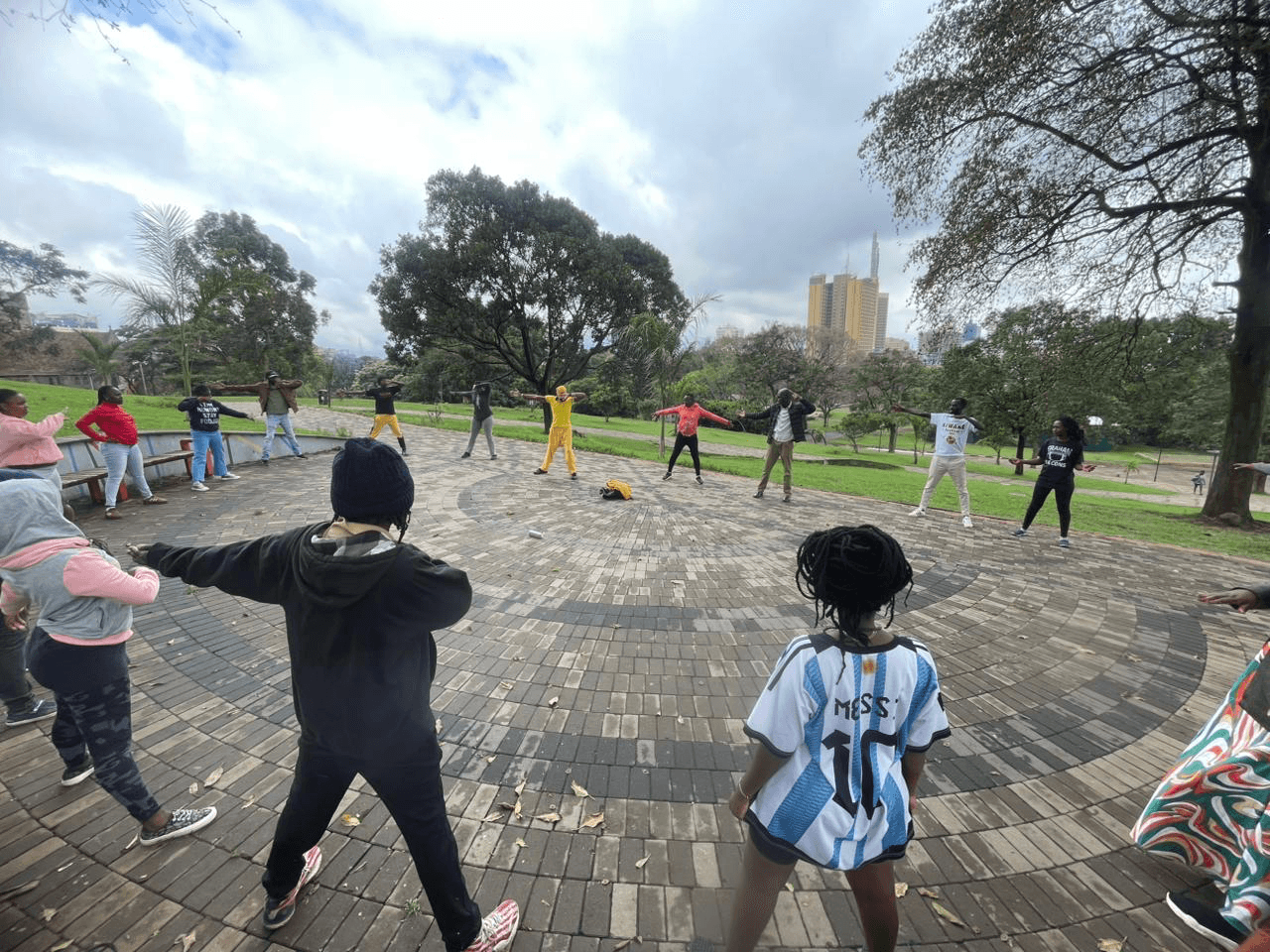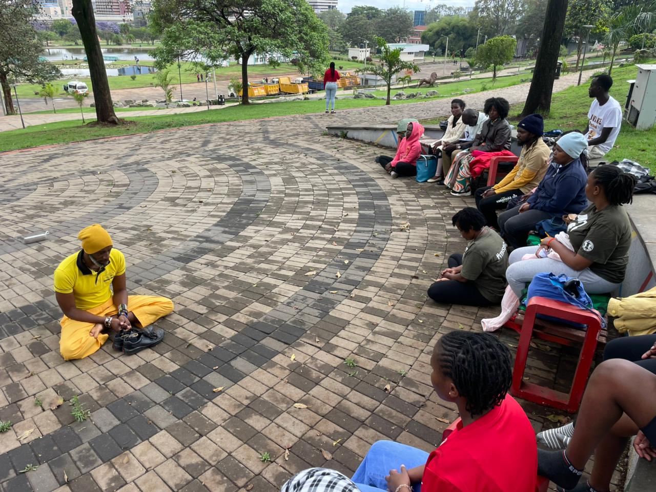 Participants convened at the KENCOM Stage before proceeding together on foot to Uhuru Park. This collective walk marked a deliberate transition from the urban environment into the session space. Meeting in a public park was an intentional element of the praxis, with nature and space understood as teachers and co-facilitators in the healing process. Uhuru Park, as a site historically associated with protests and public gatherings, was deliberately chosen to situate the session within a tradition of collective political action and as part of a broader commitment to reclaiming the public as a site of healing, political education, and collective presence.