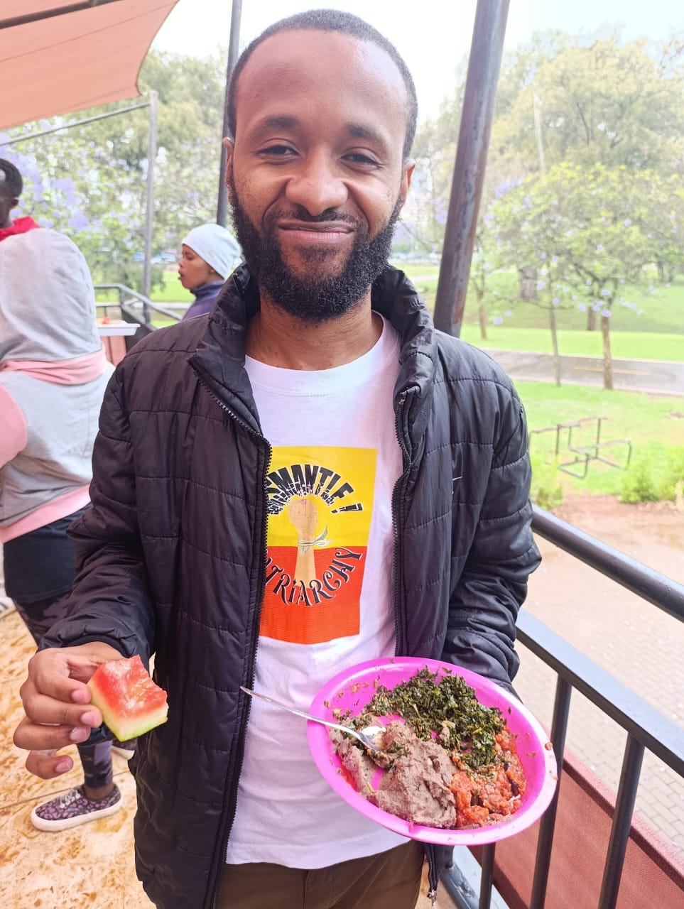 Following the session, participants shared a meal prepared in line with collective agreements established during the previous gathering. The diet was alkaline and consistent with African healing praxis. The meal consisted of millet ugali, tomato and aubergine sauce, cilantro salad, fermented porridge, alkaline tea, and fruits. Informal conversations during the meal centred on names, family lineages, reflections from earlier sessions, and personal insights. Alongside these discussions, light-hearted exchanges emerged around movement challenges, bodily stiffness, and group dynamics.