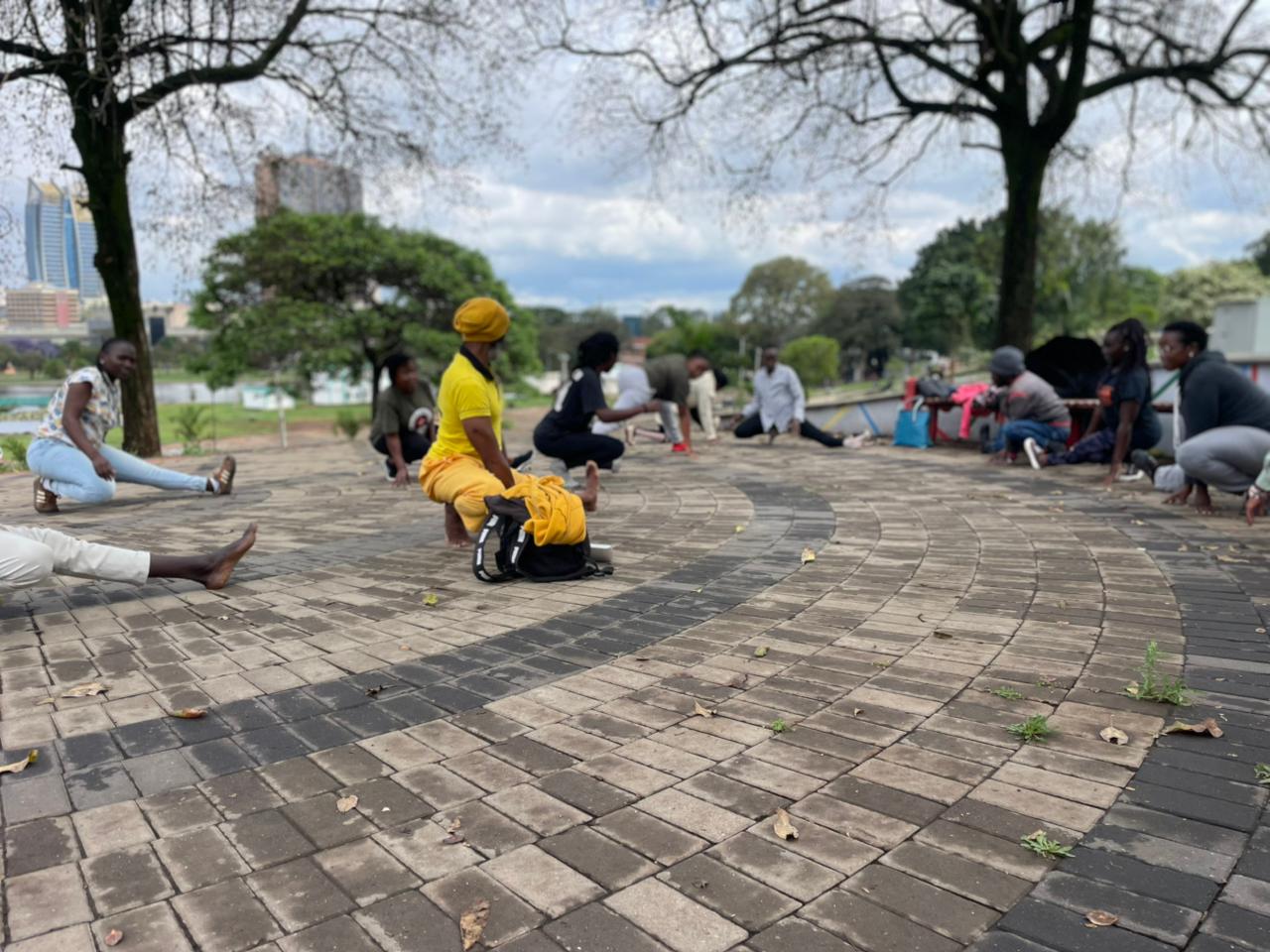 Silence and reflection: African Yoga Healing Session at Uhuru Park.